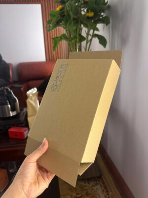 Hộp đựng sách được sản xuất từ carton 3–5 lớp giấy kraft định lượng cao, có khả năng chịu lực và chịu nén rất tốt, phù hợp đóng gói sách, tài liệu, hồ sơ có trọng lượng lớn. Cấu trúc sóng giấy chắc chắn giúp hộp giữ form ổn định, hạn chế cong mép, móp góc và bục đáy trong quá trình vận chuyển hoặc xếp chồng.