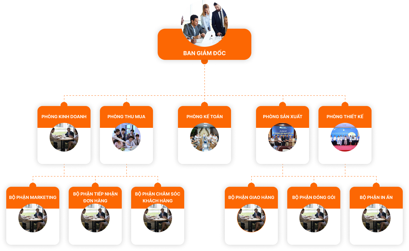 Bộ máy hoạt động của công ty được chia ra thành các bộ phận. Tuy nhiên các phòng ban đều phối hợp nhịp nhàng với nhau chặt chẽ.